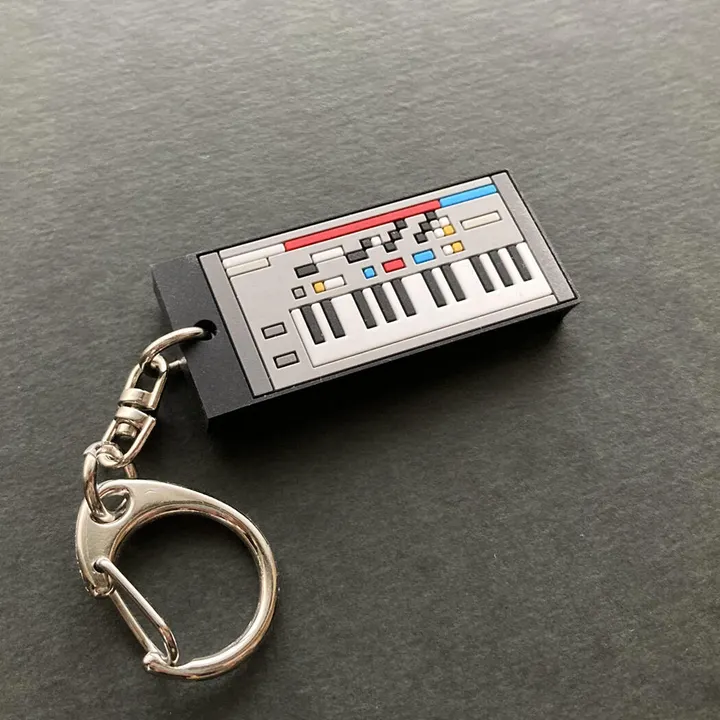 シンセサイザーラバーキーホルダーです。 ドット柄デザインのかわいいキーホルダーに仕上げました。 ラバー特有の立体感がいい感じ。 お気に入りのかばんやレッスンバッグ、 楽器ケースにつけてもいいかもしれません。 シンセ好きが反応するかもしれませんね♪ <シンセ ラバーキーホルダー仕様> 本体:PVC プラグパーツ:スチール・ナスカンタイプ 本体サイズ:約47×19×5mm(キーホルダー部分除く) ※ラバー加工の際に断面に歪みが出る事があります。 素材上の特性ですのでご了承ください。