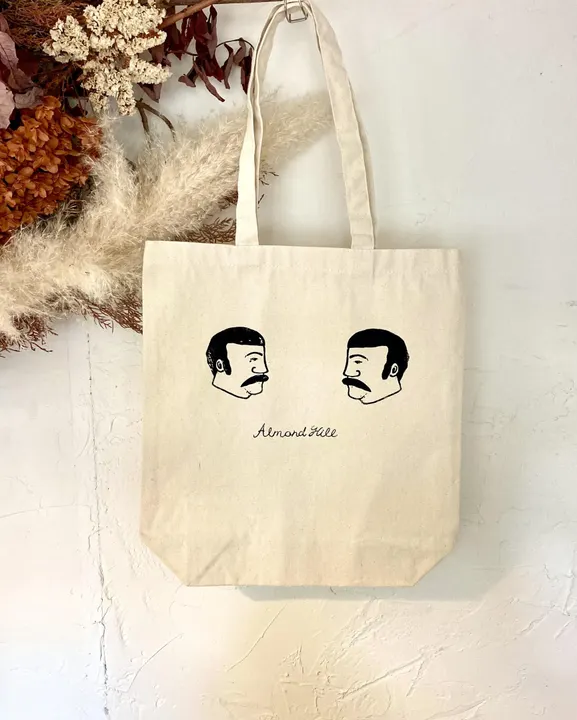 アパレルブランド「ALMOND HILL」 ALMOND HILL氏の描き下ろした絵をトートバッグにひとつひとつデザインをシルク印刷で 手刷りして仕上げております。1点、1点若干のずれやカスレなどがある時があります。 味として捉えて頂けますと幸いでございます。 何卒宜しくお願い致します。