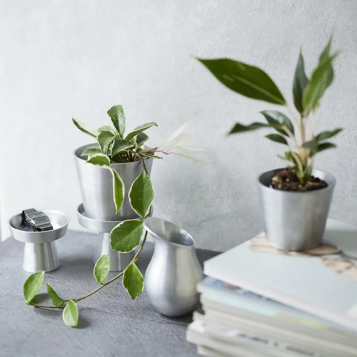 アルミで作られた植木鉢は高台付きのトレーが付いており、植物を美しく引き立て、空間に立体感をプラスします。 鉢の底が少し浮いているため水はけが良く、植物の根にとって最適な環境を保つことができます。 玄関やデスク、リビングなど、場所を選ばずに使えるため、日常生活の中でさりげなくおしゃれさをプラスしてくれます。 付属の高台付きトレーはアクセサリーや小物を置くこともでき、植木鉢の出番がない時はディスプレイ什器としてご使用になれます。