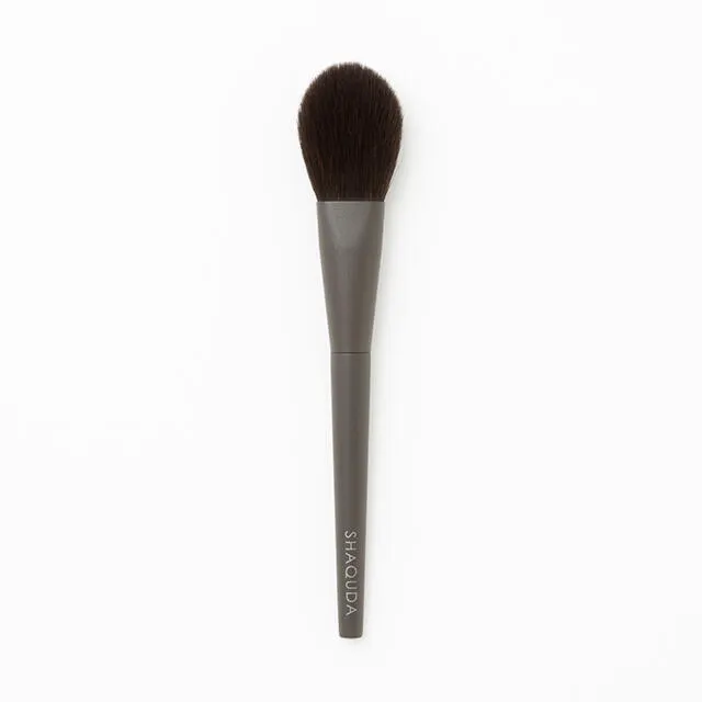 肌を華やかに魅せるため、穂先にほのかな丸みを持たせたチークブラッシュ。シャクダオリジナルの人工毛は、チークをしっかり含むなめらかな毛質で頬にふんわりとした彩りを添えます。パウダーやハイライト用にも使えます。ハンドルの裏面には、置いた時に転びにくいシャープなカットを施しています。