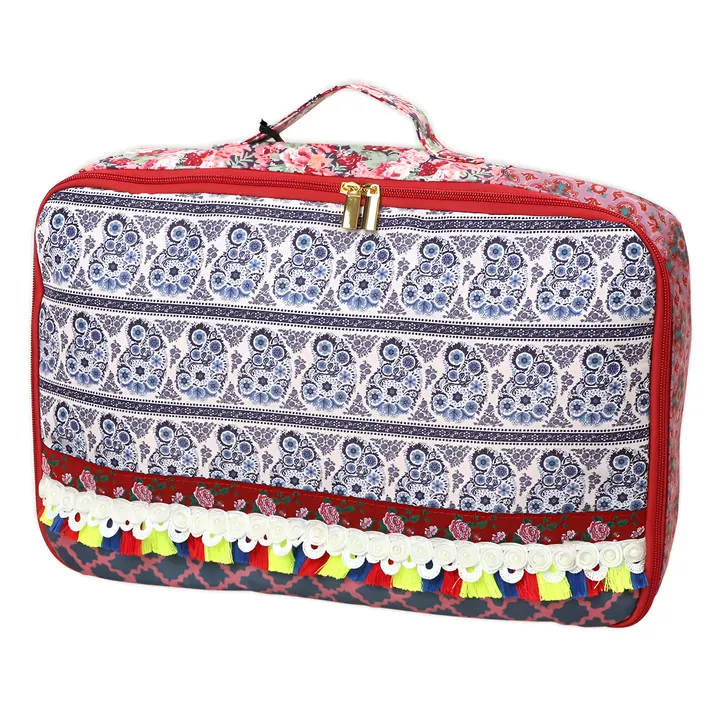 モロッカン柄のプリント生地をベースに、複数の柄生地とフリンジやレースをあしらった民族調で鮮やかなシリーズ。 もちろん旅行グッズとしての機能性も兼ね備えております。 通常の下着ケースより大きなBig下着ケースは長旅に重宝しそう! メッシュポーチ付きで大きいだけじゃなくて整理整頓だっておまかせ♪ 子供連れの旅にはおむつケースとしても◎