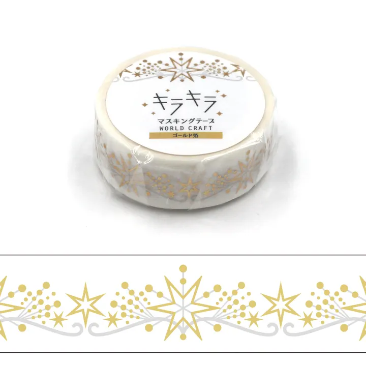 【 キラキラマスキングテープ 15mm Tiara】 ★★ 箔を使用した、キラキラが可愛いキラキラマスキングテープ 〜 第8弾 Sparkling,Memory,Fancyの3つをテーマに <12柄> を揃えました ★★ 可愛らしいティアラがモチーフのデザイン。 ゴールドの箔がおしゃれ! 切って手帳の枠にデコレーションすると予定のなかった空白の日も かわいく埋めることができますよ♪ 『ゴールド箔』 を使用しています♪