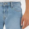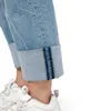 廃棄されたジーンズなどのリサイクル素材およそ40%とオーガニックコットンからできた糸から新しいデニムを生産。ボタンやリベットは100%ステンレス製を使用。