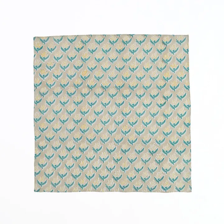 3月8日は女性の社会参画を願う日である「国際女性デー」イタリアでは「ミモザの日」とも呼ばれています。 夫から妻へ、子供からお母さんへだけでなく、更には女性同士でもミモザを贈り合うのだそう。 国ごとに異なるミモザの花言葉。イタリアでは「感謝」、日本は「優雅」「友情」、フランスでは「感受性」「思いやり」などがあります。そんなミモザ柄のハンカチ、自分用にはもちろん、日頃の感謝を伝えるちょっとしたプレゼントにもおすすめです。 ブロックプリントとは、木彫り版でハンコを押すように1柄ずつ1色ずつプリントされたものです。 まず、アウトラインとなる柄のスタンプを押していき、その後色を乗せていくため、使われている色の数だけ作業は複雑になっていきます。 全て手作業のため、染ムラやスタンプの境目などが少し出ていますが、それがブロックプリントの良さでもあり、風合いとなっています。 *ブロックプリント 【ファッション】【小物】【ファブリック】【ブロックプリント】