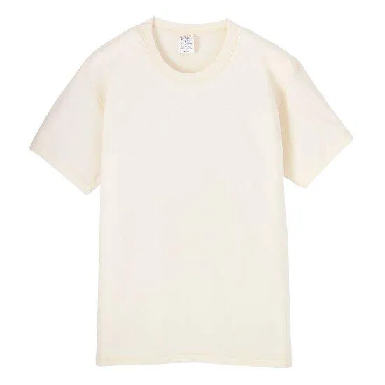 古き良きアメリカの製法を用いた二本針ステッチのバインダーネックは、タフでクラシックな仕様。古くから使われている丸編み機を用い、両脇に縫い目がない筒状の丸胴仕様は、アメリカらしいディテール。身幅に程よいゆとりが生まれ、洗濯時のねじれも軽減されます。
