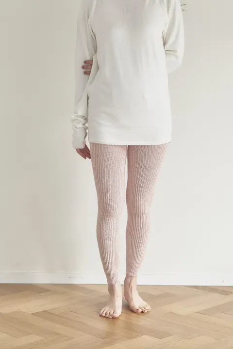 編地はリブ網で、程よいストレッチ性があり、締めつけ感はありません。 あ柔らかいコットンニットに包まれている感じで、履いている感覚が無いほど締め付けません。足首からふくらはぎ、太ももお尻まで優しく包んでくれます。スカートやワンピースのインナーにお勧めです。 •フリーサイズ 身長150-170cm/ウエスト最大90cm/ヒップ80-105cm •綿95%/ナイロン5% •日本製