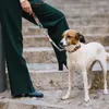 ボヘミアンプリントのMalda。 落ち着いたトーンの中に散りばめられた、ペイズリーや幾何学模様がアートのようなデザインです。 色彩豊かなボヘミアンプリントのリードは、首輪とともに着用すればますますエキゾチックで刺繍に満ちた世界へ連れて行ってくれます。 ? ハンズフリーリードは長さ約210cm。大小のリング位置はそれぞれ調節可能なマルチポジションのため、肩がけリード、手持ちリードとしても自由にお使い頂けます。 ? 素材 裏地:ポリエステル100%リボン(エコテックス認証)表地:ポリエステル100%バックル:特許取得のアルミニウム製サイドリリースDリング