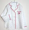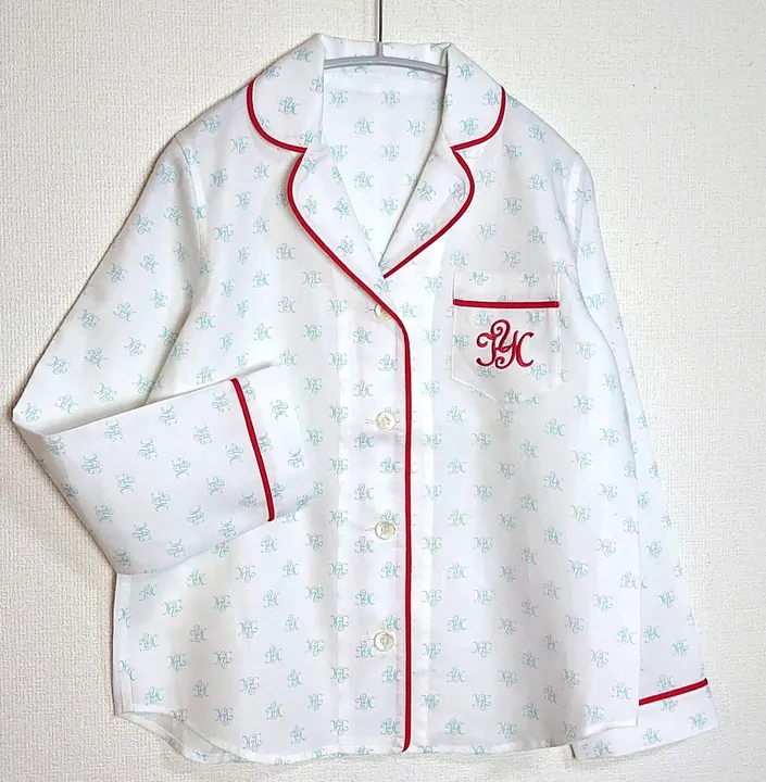 レディース・パジャマ 高密度アイリッシュリネン100% ロゴプリント(パイピング赤) M
