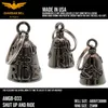 アメリカ製ガーディアンベル社製ガーディアンベルです。 MADE IN USA アメリカ製 交通安全 魔除け 御守り ガーディアンベル アメリカのライダーの間には、事故や、転倒の原因は「道路にひそむ悪魔」によるいたずらだという伝説があります。悪魔は走る者に悪戯やトラブルを運んできます。このベルは美しい音色で悪魔たちを追い払うと言われ愛されています。そんな悪魔のいたずらを防ぎ、御守りとなるのが、守護者のベルという意味を持つガーディアンベル。 日本でも鈴の音(ね)は神道では魔除けの音と言われています。ピューター製の鈴でいい音色でガーディアンベルはデザインも様々あります。 またガーディアンベルにまつわる伝説として、プレゼントとして送られたベルの効果は、自分で手に入れたものの2倍になると言われています。 それゆえに彼氏・彼女・友達・家族へのプレゼントとしての人気も非常に高まっています。 シルバーアクセサリーのようにおしゃれに装着できて素敵な音色を奏でるガーディアンベル。 バイカー以外にも自転車や旅・交通安全のお守りとしてお使いいただけます。 カバン・ランドセル・キーホルダー・ペットの首輪等に付けてお使いください!! ※タイラップ等でバイクのフレームにも簡単に取り付けできます。 アメリカンモデルだけではなく、旧車ファン、レプリカライダーまで、さらにバイクだけでなく、自転車や車にもピッタリな御守りとなっています。 アクセサリーとしても人気で、アイディア次第で車体だけでなく、キーホルダーや鞄など、どこにでも付けておしゃれに楽しめます。
