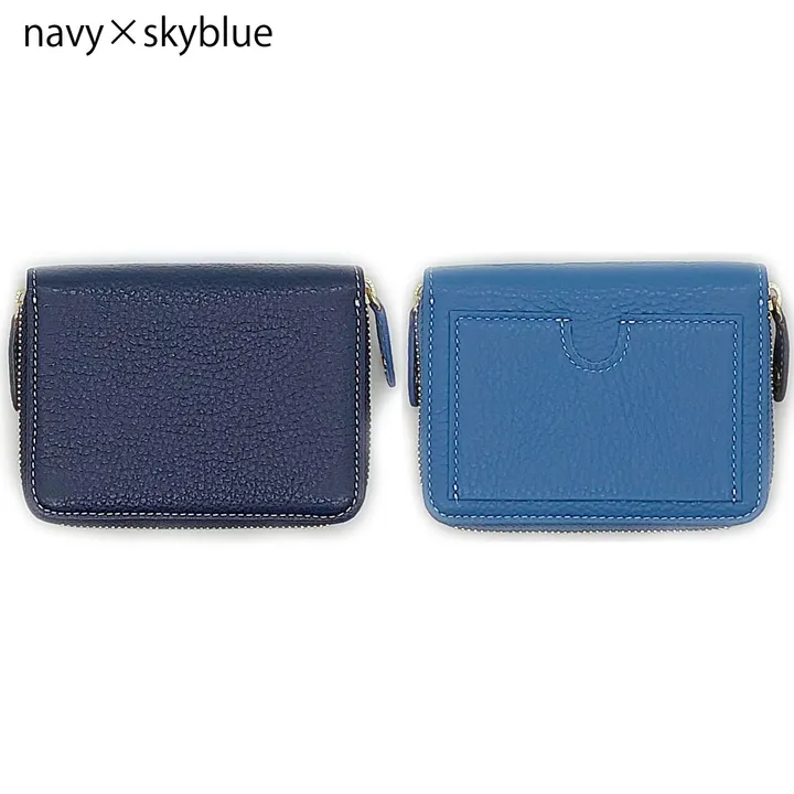 ダブルフェイスウォレット【W-FACE】 ネイビー×スカイブルー シュリンクレザー