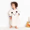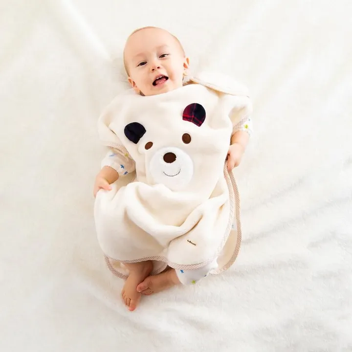 綿素材100%のコットンスリーパーです。 お顔のモチーフがインパクトあって、とっても可愛いですね。 伸縮性があり、体に馴染みやすく隙間が出来にくい素材なので、寝ている時も動きの多い赤ちゃんにピッタリ! 秋・冬・春と3シーズン使える素材でギフトにも最適です。 ・毛足が長く、肌触りも非常に柔らかな綿100%の生地を使用。 ・首がすわる前のお子様にも使えます。 ・よく動く元気な赤ちゃんの寝冷え対策に。 ・毛布に包まれたような暖かさで、冬場の部屋着や防寒対策にも。 ・新生児から3歳頃まで長く使えます。