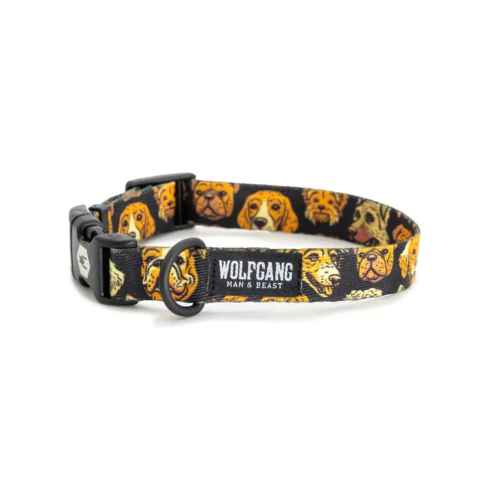 犬用の首輪。 WOLFGANG MAN & BEAST のリードやカラー(首輪)は、車のシートベルトなどにも使われる、強度と柔らかさ、耐久性を兼ね備えたポリエステル100%のウェビング素材を使用しています。 水を吸い込まない、極細のポリエステル糸を非常に密に編むことによって、海や川でも使用可能、汚れや臭いもつきにくい特徴があります。 さらに、ウォッシャブルで洗濯も可能。 アウトドアでの使用にもピッタリです。 製法には、ウェルディング製法( 生地を熱で溶かすことによって生地同士を接着し、強い耐久性を実現する溶着製法 )を採用。 糸による縫い目が無いので、飼い主・愛犬にとって快適な使い心地を実現。通常の縫製による擦れからの糸のほつれが生じることがありません。   WOLFGANG MAN & BEAST のすべてのドッグプロダクトは、こだわりのアメリカンメイド。 ドッグプロダクトは、大切なパートナーである愛犬が、長年愛用できるものであってほしい。 その思いから、選び抜かれた素材を使い、品質にこだわり、WOLFGANG MAN & BEASTのすべてのドッグプロダクトはアメリカ国内で生産されています。 <Sサイズ:対応犬種の目安> ジャック・ラッセル・テリア/パピヨン/マルチーズ/シーズー/ヨークシャーテリア/キャバリア/ホワイト・テリア/ミニチュア・ダックス ...etc <Mサイズ:対応犬種の目安> パグ/コッカスパニエル/シュナウザー/ボストンテリア/フレンチブルドッグ/オーストラリアン・キャトル・ドッグ/スタッフォードシャー・ブル・テリア/ブリタニー/サルーキ/ビーグル/柴犬/ダルメシアン/ウェルシュ・コーギー/ボーダー・コリー ...etc <Lサイズ:対応犬種の目安> ボクサー/ゴールデンレトリバー/ジャーマン・シェパード/ロットワイラー/シベリアン・ハスキー/ブルドッグ/コリー/アメリカン・ピットブル・テリア ...etc 上記の犬種はあくまで目安です。個体によりサイズは変わりますので、購入前に必ず愛犬の実際のサイズを計測して適合サイズを確認してください。 【MugShot】(マグショット)- お気に入りの犬種はどこにいるかな? あなたの大好きな犬種を見つけてください!。