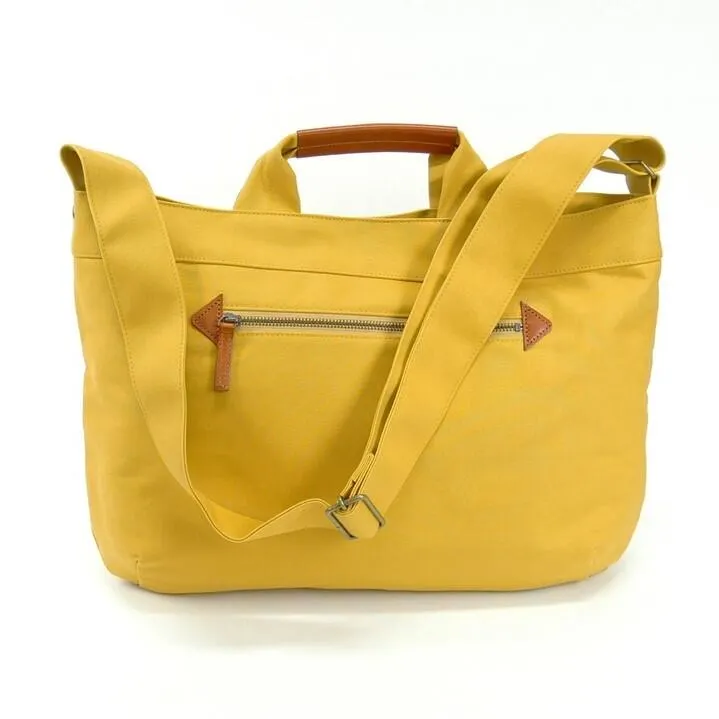 使っていくうちに段々と馴染み味の出て来る帆布のショルダーバッグ、ハンドルやファスナーの持ち手に使ったヌメ革も使い込むうちに雰囲気を増してきます。上質な11号の倉敷帆布を表側と内側の両方に使い、革は全て栃木レザーを使用しています。長さの調整出来るショルダー紐は、バッグの中に畳み込む事が出来、普通の手持ちバッグとしても使用出来る2WAYタイプです。両手はフリーになるので、自転車に乗ったり、ベビーカーを押したり、荷物を持ったり、体と一体化した便利なショルダーバッグです。nonosらしい4色展開と内側の配色も「らしさ」への拘りです。 <サイズ> W : 44cm H : 34cm D : 12cm ショルダーベルトの長さ : 64cm~120cm 重さ : 約610g <仕様> 本体 : 帆布二重仕立て ハンドル : 革巻き 開閉口 : マグネットボタン/ファスナー 内側 : ポケット×3(ファスナー付×1)Dカン×1 A3収納 : 可  <素材> 表地 : 綿100% 倉敷帆布11号 裏地 : 綿100% 倉敷帆布11号 ハンドル 巻き : 牛革 栃木レザー ファスナー持ち手 : 牛革 栃木レザー <縫製> 日本製(兵庫/豊岡 FACTORY) ※倉敷帆布生地はシャトル織機で織り上げた綿帆布です、糸のつなぎ目や織り段や凸凹など独特の風合いがありますのでご理解の上お楽しみください。 ※綿100%の帆布生地の為、最初は縫製時のしわが多少目立ちますが、使用していくうちに柔らかく馴染んで来ますので綿帆布の味としてお楽しみください。しわを気にされる方はご購入をお控え頂けます様お願い致します。 ※ 濃い色の場合は濡れたものと強く擦ると希に色落ちする場合がありますのでご注意ください。 ※商品写真はできる限り実物の色に近づけるよう徹底しておりますが、 お使いのモニター設定、お部屋の照明等により実際の商品と色味が異なる場合がございます。