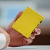 キャッシュレス時代に最適な薄型コンパクトウォレットです。 アッと驚くお札の収納方法で、新感覚の次世代型ウォレット。 これ1つで身軽に出かけたい方にオススメです。 【仕様】 ◼︎サイズ たて=10.5㎝ よこ=8㎝ 厚み=1㎝ 手の平にスッポリおさまるコンパクトサイズ。日本の1万円札に合わせたサイズ感です。 ◼︎収納量 カード=8枚 お札=15枚程度。 普段使いに必要な量は問題無く収納可能。 ◼︎重量 45g ◼︎素材 牛革 お札収納バンドに平ゴム使用 ◼︎カラーごとの皮革の種類 ①オイルレザー(ブラック/ネイビー/キャメル) ②サフィアノレザー(ネイビーサフィアノ/スカイブルー/イエロー/トープ) ③クロコダイル型押し(ブラッククロコ) ◼︎皮革の種類と特徴 ①オイルレザー(オイルを多く含み経年変化が楽しめる皮革) ②サフィアノレザー(革表面に凹凸の加工を施し、傷が付きにくい皮革) ③クロコダイル型押し(表面にクロコダイル柄を施す皮革) ◼︎原産国 日本 ◼︎留め具の種類 平ゴム