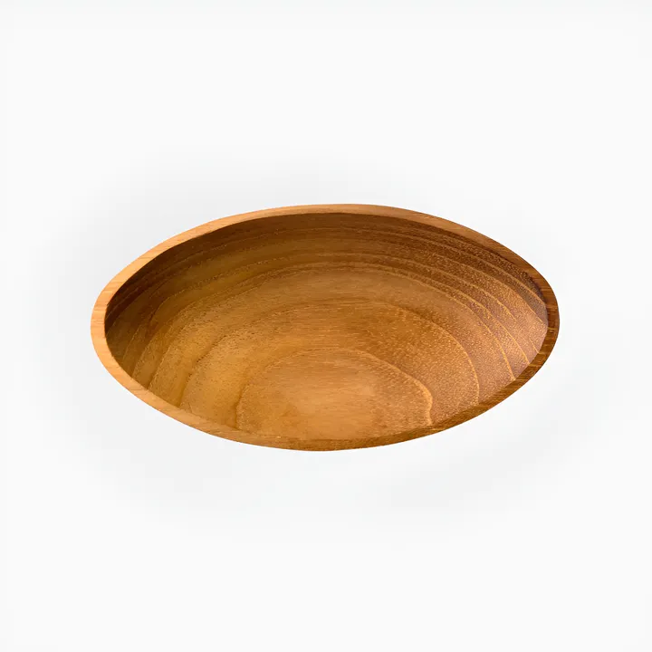 【コーティング剤不使用!ハンドメイドの木製品です】 いわゆるチーク。インドネシアではジャティと呼ばれています。 インドネシアやタイなどに産するジャティは、世界の最高級材のひとつ。 耐久性・耐水性に優れ、家具材や床材などに使用されています。 現在は自然保護のため伐採禁止になっているところも多く、 輸入も大変難しくなっている貴重な材です。 バリ島の最高級材ジャティで作られたアクセサリートレイです。 丸みがかわいく、ピアスやリングを置くのにぴったりなミニサイズです。 ◎木製食器 商品取扱上のご注意 ヌサンタラの木製食器は天然の風合いを活かすため出荷時にオイルを塗っていません。 サラダ油等お手持ちの食用オイルを塗っていただくことで、磨耗や乾燥を防いでくれます。 定期的にオイルでお手入れをし末永くお使いください。また食洗機のご使用はお避けください。