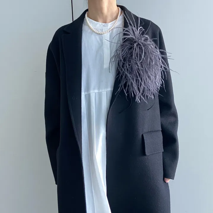 オーストリッチの繊細でふわふわした羽を使った 上品で華やかなコサージュです。 大人の女性らしさをそっと演出してくれる ふんわりエアリーで華やかなコサージュです。 バッグやお洋服につけて華やかに・・・ ***商品について*** ●入学式・卒園式・結婚式などのフォーマル使用から普段使い、バッグにつけてアクセントに・・など色々な用途にお使いいただけます。 ●ボリューム感はありますが着け心地も軽く使いやすいです。 ●ピン&クリップタイプか服に穴が開かないマグネットタイプをお選びいただけます。 ●裏面は馬革を使いひとつひとつ丁寧に作製しております。 ●お色は ほんのりピンクのさくらピンクカラー ダークグレーカラー の2色になります。 とてもニュアンスのあるカラーの華やかな印象でお洋服に合わせていただけます☆彡 ●ベロア素材の華奢なリボンが付いています。 こちらは高級リボンのトップメーカー・木馬を使用しています。 適度なボリューム感と光沢がありオーストリッチの羽ともマッチしていて素敵です。 バッグに取り付けるときはこちらのベロアリボンで結んで取り付けられます。 ●クリアケースに入れてお届けしますので、その後の保管にも便利です。