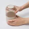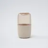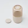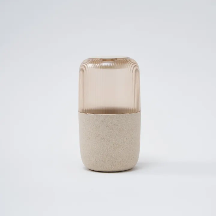 ツートーンデザインのロールウェットティッシュ専用ウェットティッシュケース 上半分が透明になっており、デザインのアクセントでもあるストライプでさりげなくウェットティッシュの残量を確認できます。 下半分のニュアンスのある素材とカラークリア素材のツートーンでオブジェのような装いです。 家具や手をサッと拭くことのできるウェットティッシュは、使用頻度の高い日用品。 スリムな縦型なので、場所を取らずに置くことができます。 市販の高さ14cm以下のロール型ウェットティッシュを詰め替えいただけます。 角のないフォルムは空間をやさしく演出します。 別売りのティッシュケースとセットでお使いいただくことで統一感を出し、暮らしの質を高めます。 取り出し口パーツは程よい固さで、本体から外れにくく、ウェットティッシュの引き出しやすさにこだわりました。 中央で上下パーツに分かれるため、詰め替えが容易です。 リビングや寝室、洗面所まで幅広くどんな空間にもとけこみます。 残量がわかるさりげない機能性を兼ね備えた、お気に入りのアイテムと一緒にインテリア感覚で飾りたくなるデザインです。 お米のもみ殻を含むバイオプラスチックTEXaと再生ポリカーボネートを使用した環境に配慮したプロダクトです。 TEXaはお米のもみ殻の粒が見えて、陶器のようなマットでやさしい質感を実現。 透明感の美しい再生ポリカーボネートは自社の製造過程で出るロス品等をリサイクルしています。 サステナブル素材の特性上、粒感や色味のニュアンスに個体差があります。表情の違いをお楽しみください。 国内の自社工場で生産している日本製。 :: soemとは 大阪で100年続く業務用プラスチック製品メーカーが「愛着を持って長く大切に使っていただく」をコンセプトに展開するブランドです。 機能性と飾りたくなるような心に響くデザインに、長く大切に使っていただきたいという思いを込めています。