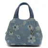 デニム地に花模様をプリントしたハンドバッグ SM16740702