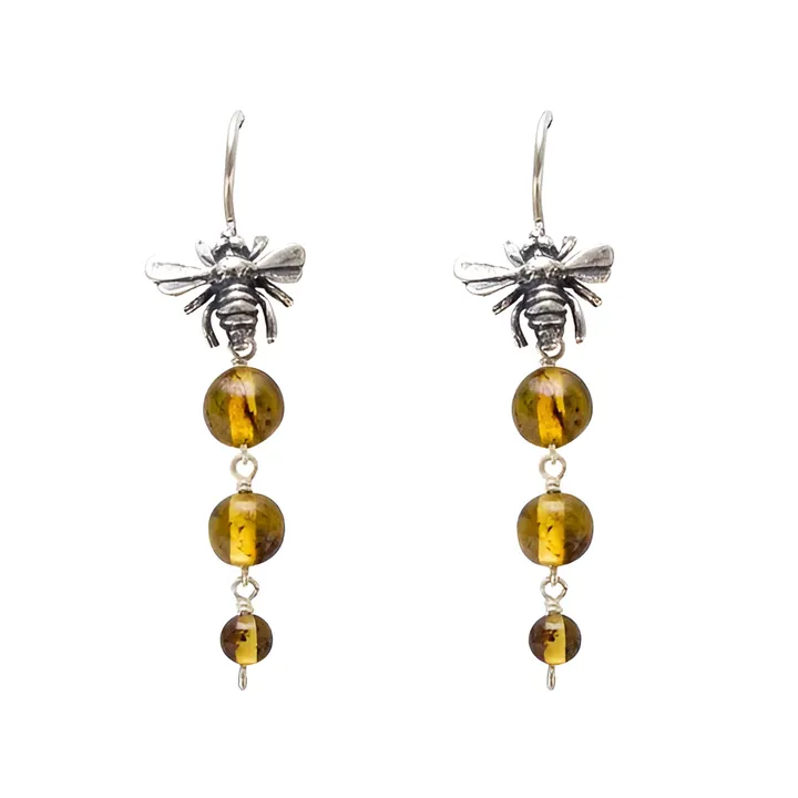 Aretes Abejitas Derramando Miel|蜂のピアス(シルバー・アンバー・天然石)