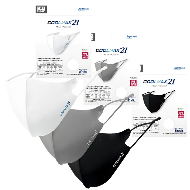 布マスクでありながら、不織布マスクと同等のフィルター性能を持つことが証明されている冷感マスク「COOLMAX21」を中心に、高品質・高機能なマスクを展開