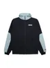 スタイリッシュに着こなせるスリムタイプのフルジップナイロントリムスエット。 ナイロン製の収納可能なフードやスリーブの切り返しなど細部にこだわり、フロントとバックに大きさの異なるロゴをプリント。