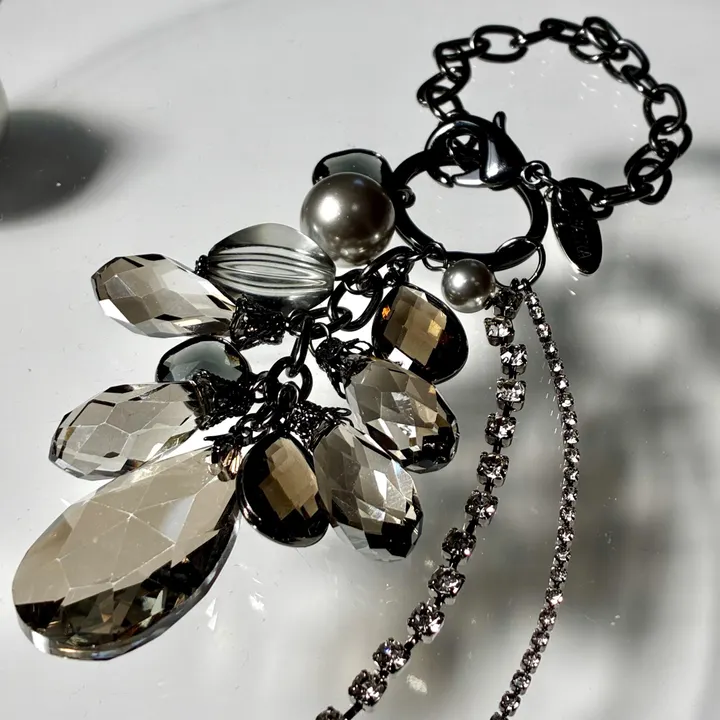 重厚なガラスとメタルを用い、静かな輝きと品格を纏うアクセサリー。日常にも特別な場にも寄り添う、大人のためのチャームブランド。