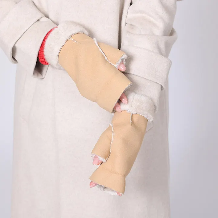 手袋┃上品なフェイクムートンとミンクタイプファーのハンドウォーマー BE(ベージュ)