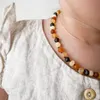 研磨されていないアンバー(琥珀)を使用したアンバーネックレスです。 馴染みやすい色合いで、様々なファッションに合わせやすいデザインとなっております。 ヨーロッパで古くから親しまれる、天然琥珀のベビーネックレス アンバーネックレスは、バルト海沿岸で採取される天然琥珀(アンバー)を使用したネックレスです。ヨーロッパでは古くから、赤ちゃんの健やかな成長を願うお守りとして親しまれてきました。 また、大人にも、幸運を呼び込むお守りとして身に着けている人もいます。 【歯ぐずり時期の不快感をサポート】 アンバーには、コハク酸と呼ばれる成分が含まれています。このコハク酸が、赤ちゃんの歯固めの時期の不快感を和らげると言われています。 【大切な方へのプレゼントにも最適】 琥珀のプレゼントは「幸せを贈る」という意味を持つため、出産祝いなどのプレゼントにもおすすめです。 【赤ちゃんにも安心】 ビーズの間にすべて結び目が入っており、1ヵ所が切れてもバラバラに散らばることはありません。 アンバーネックレスの重さは、ネックレスのサイズによって異なりますが、一般的には約5~15グラム程度です。 アンバーは石ではなく樹脂なので、非常に軽量です。 そのため、赤ちゃんがつけていても負担になりません。 また、アンバーは温かみのある素材なので、赤ちゃんも安心感を感じられると言われています。 【熟練の職人による手作り】 現地の職人によって一つ一つ手作りされています。 手作りのため、同じデザインでも全く同じものは二つとありません。 世界に一つだけの、特別なベビーアンバーネックレスをお届けします。