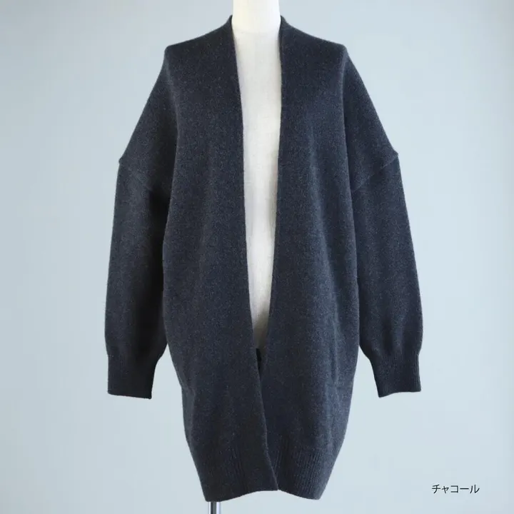 メリノオプティモウールという豪州の羊毛の中でも生産量が少なく、希少なウール糸を使用しているの でチクチク感がなく、カシミヤとのブレンドにも非常に適しています。 とても軽くてふっくらとした程よい厚みや、上質でやわらかな肌触りが魅力です。 上品な雰囲気を残しながら、程よい抜け感をプラスするボタンレスのシンプルデザインとなっております。 えりは抜け感があり、すっきりした印象に。 リラックスして着てほしいから、首元にかけて余分な装飾を省いた、すっきりとしたデザインに。 さっと気軽に羽織れるよう、フロント部分もあえてボタンのない形に仕上げました。おしりまですっぽり隠れる長めの丈で、やわらかな丸みのシルエット。 羽織るだけでコーディネートに、やわらかさを加えてくれます。 両サイドに手がすっぽり入る大きめポケットが付いています。 鍵やスマホなどちょっと入れてお出かけするにも便利です。 袖口のリブは約7cm。きつくなく程よくきゅっと留まるようになっています。 家のなかで着るときには、仕事やら家しごとやら、なんだかんだと袖をまくることも・・・ そんなときも優秀なカーディガンです。 しめつけがなく、着心地はリラックス。 あたたかさをずっと感じられるカーディガンは、冬の寒さ対策だけでなく、暖房費の 節約などエコにも◎。