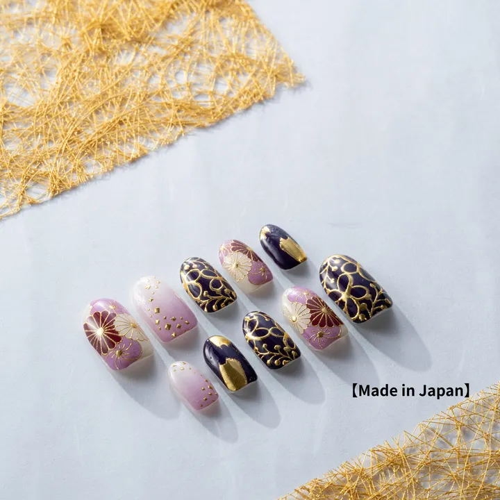 「指先から始まる日本」。 爪にやさしい素材でダメージを気にせず、伝統美を現代に。 気合いのいらない指先の和装体験を。