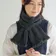 アランと地模様が楽しめるフリンジ付きミニマフラー DG(ダークグレー)