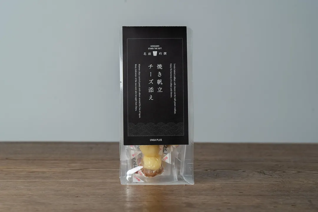 帆立貝柱を、地元加工場の遠赤外線焙焼機で焼き上げ、更にナチュラルチーズを添えました。帆立特有の旨味と、絶妙に絡むチーズのハーモニーをお楽しみください。 日本海を巡り物資と文化を運んだ北前船。小樽からも沢山の海の幸が運ばれました。そんな海の幸の旨味を凝縮した、特製おつまみ燻製シリーズです。一つ一つ真空パックの個包装になっている、食べやすい一口サイズ。ビールや日本酒によく合います。