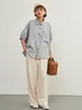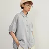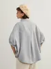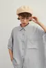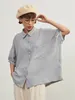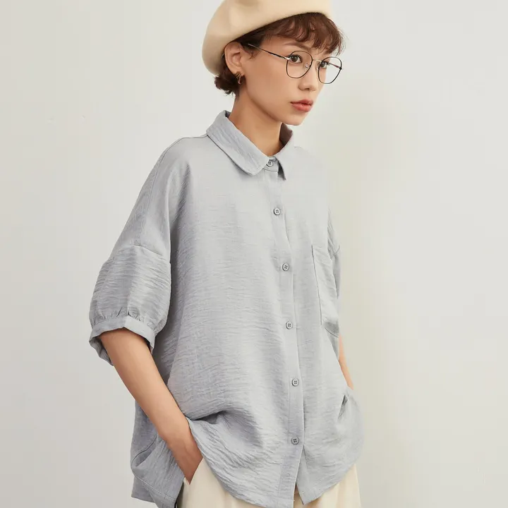 KNXC403-ルーズフィット春夏ブラウス・シワ感素材アイロン不要・ゆるふわ半袖シャツ・定番トップス GRAY/FREE