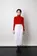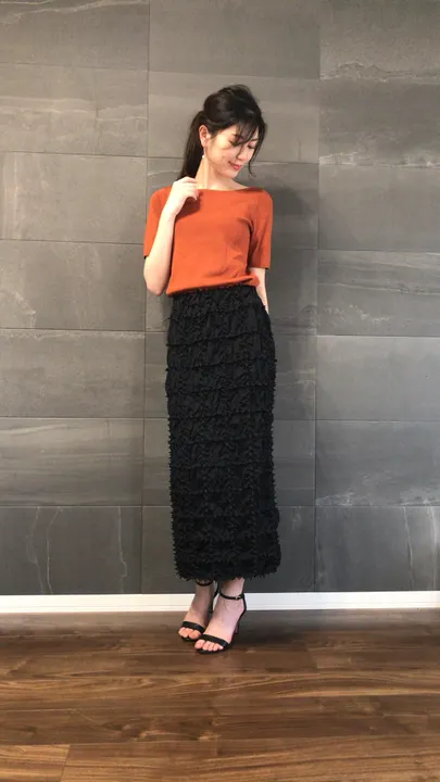 絞りによる素材の大胆さはありつつシンプルなデザインで、どんなシーンでも決まる一枚です。 ストレッチの効いたダンボールニット素材に伝統的な技法”蜘蛛絞り”を格子柄で施しました。 絞りの凹凸が製品のストレッチ性をより高め、ラインはタイトですが着心地の良いスカートです。 裾部分は切りっぱなしの始末になっており、お好みのサイズに格子の升目ごとにカットができます。カットした部分からは糸のほつれなどはなく、カット部分は絞り形状効果で裏側へ隠れます。 格子状の蜘蛛絞りの凹凸は着用した時にボディラインをきれいに見せてくれます。 小さくたたんでもシワが気にならず、ご旅行や出張の多い方にもおすすめ。 ご自宅でのお洗濯も可能です。形状はなくなりません。