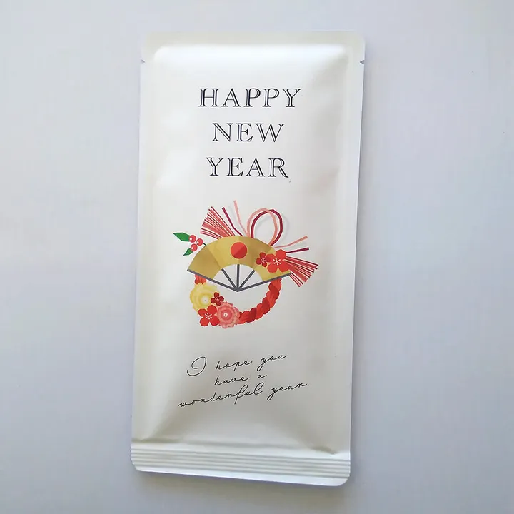 本格深蒸し掛川茶ティーバッグで 新年のご挨拶。 本年もよろしくお願いします の気持ちを込めて... 年賀状やお年賀用ギフト、お正月のご挨拶にどうぞ。 お茶に含まれる「カテキン」「カフェイン」「ビタミンC」などの有効成分には、 抗菌作用・免疫機能の向上、疲労回復、美肌効果など、身体に嬉しい効果が期待されています。 心も身体も温まる「おいしい年賀状」を。 静岡県掛川市産の茶葉を使用し、お茶本来の甘みと旨みを引き出しました。 まろやかな口当たりと、ほどよい渋み、ふわっと広がる良い香りが特徴です。 お茶に含まれる「カテキン」「カフェイン」「ビタミンC」などの有効成分には、 抗菌作用・免疫機能の向上、疲労回復、美肌効果など、身体に嬉しい効果が期待されています。 ■ おいしい入れ方 カップにティーバッグを 1つ入れてください。 カップにお湯を注ぎ約30秒待ちます。 ティーバッグを数回上下させ きれいな色になったら飲み頃です。 ■裏面のデザインを、『郵送用』『手渡し用』からお選びいただけます。 【郵送用】 110円切手を貼って年賀用としてポストに投函。 本格深蒸し茶ティーバッグを 年賀状のように送ることができます。 (12月25日までに投函すれば元旦に配達されます) 【手渡し用】 余白に自由に書き込み可能! ボールペン、サインペン、鉛筆などで簡単に書くことができます。 企業様、飲食店様のノベルティーギフトにもおすすめです。