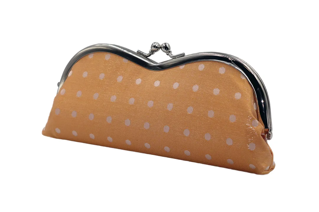 キラキラと光り輝く眼鏡ケース/西陣織シルク×艶やかナイロン・山型がま口眼鏡ケース・水玉・レディース・日本製 スパークリング・オレンジ