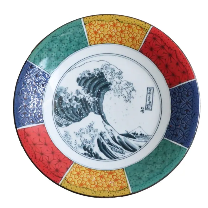 Japanese traditional patterns.~日本の伝統なる文様の一皿が魅了する。~ 「波富士」はた世界でも有名な絵です。日本一の富士山は、幸運を招き繁栄をもたらすとされてきました。 イングレーズという絵付方法で、釉(うわぐすり)の上に絵付をして焼くことにより、釉の中に絵柄が染み込みます。 絵柄の剝がれがなく、鉛・カドミウムなどの有毒物質が出ません。安心してお使いいただけるアイテムです。 たっぷり盛り付けられる大皿は、パスタやステーキ、ハンバーグなどメイン料理にも最適です。 うつわの余白を楽しんで、真ん中に少しだけ盛り付ければおしゃれな空間を演出できるでしょう。