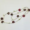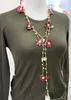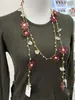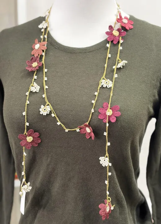 トルコの伝統手芸オヤ お花のラリエット (ボンジュクオヤ) レース編み エンジ×グリーン系