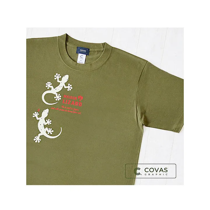 ユニセックス・半袖プリントTシャツ "ヤモリ" カーキ デザインTシャツ 503004-47 size: S
