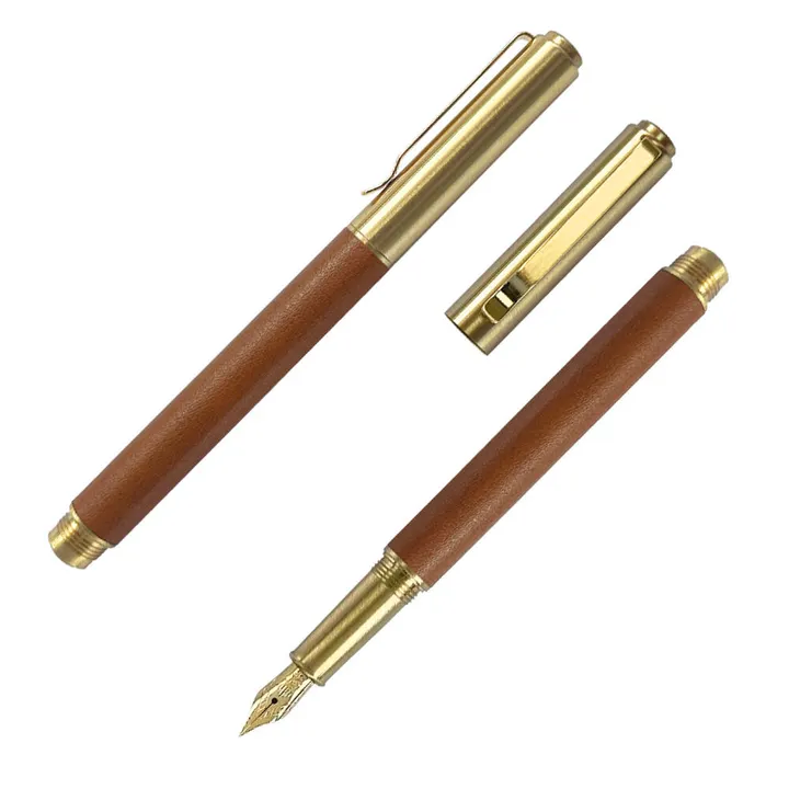 再生皮革の深みと真鍮の重み、クラシックに進化した 【ハンドスクリプト レトロブラス】 レトロブラス万年筆  ライトブラウン