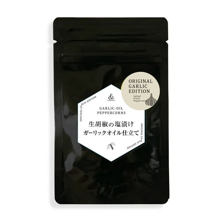 こちらは「生胡椒の塩漬け(ガーリックオイル仕立て)」のお味見用サンプルです。 全国送料無料でお届けします。 お気軽にご活用ください。 ───────────────────────── ◯「生胡椒の塩漬け〜ガーリックオイル仕立て〜」とは? ・世界的名産地「カンポット(カンボジア)」産の、最高品質の「生の胡椒」を使った調味料です。 ・畑で採れた「生胡椒」をそのまま天日塩のみで贅沢に漬けたものとガーリックオイルを合わせました。 ・ガーリックオイルはクセがなく食材との相性が良いグレープシードオイルをベースに、香川県のにんにく専門農家「白川農場」さんに丹精込めて仕上げて頂いています。 ・粒のまま食べる胡椒で、ガーリックオイルと共に様々なお料理と相性が良い万能調味料です。 ・胡椒だけ、オイルと胡椒を一緒に、オイルだけ、といった形でさまざま楽しんでいただけます。 ★オイルと合わせる生胡椒は「プレーンタイプ」を使用しています。 ★食欲そそるガーリックオイルの香り、生胡椒のプチッと弾ける食感と旨味。その両方を楽しめる仕上がりとなっています。 ・おすすめの食べ方 …バゲットと一緒に …茹でエビ …マッシュポテト …春巻きやとんかつ等の揚げ物 …ローストビーフ …たまごかけご飯 …クリームチーズ(+クラッカーに乗せても◎) …モッツァレラチーズ …お刺身 …お肉料理 …パスタ