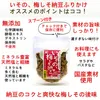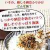 ーーー 【送料に関して】 商品合計が「60袋以上」もしくは「2ケース以上」で送料は弊社負担となります。(北海道・沖縄は除く) ーーー アミノ酸調味料・酵母エキス不使用のふりかけです。 乾燥納豆のコクとしそ、梅肉を合わせることで味に深みを与えました。 やさしい味が特徴です。 ご飯、お豆腐、サラダなどにふりかけて。 スプーン付き 【栄養成分(100g当り)】 熱 量:280kcal タンパク質:38.2g 脂 質:6.3g 炭 水 化 物:184g 食塩相当量:26.2g 【塩ってとっても大事!天然塩を使っています】 「無添加で作っている」というメーカーさんは多くいらっしゃいます。 無添加といってエキスを使うのは論外ですが(これはもう違法なんですけどね)、味付けに使っているものはどんなものを使っているの?って気になる方もいらっしゃるのではないでしょうか。 弊社で加工しているワカメの味付けにはすべて天然塩を使っています。 加工食品に多く使われる精製塩ではなく天然を使用しているため自然のミネラル分と旨味も豊富に含まれています。 精製塩とは、塩化ナトリウム純度99%以上の過精製塩のことです。 これはイオン膜透過法という方法で分子レベルでミネラルなどがすべて除去されています。 その中には、ナトリウムの排出に必要なカリウムなども多く含まれます。 このような精製塩ばかりを摂取していると、ナトリウムの過剰摂取になってしまいます。 そのためカネジョウでは毎日安心して家族の皆様に食べていただけるよう、弊社の加工においてはすべて天然塩を使用しています。