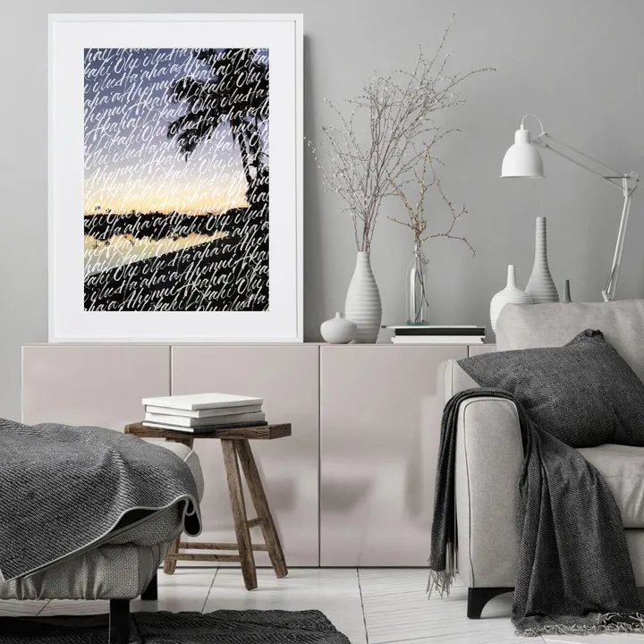 アーティスト -PROFILE- MAHALOVE Surf(マハラブ サーフ) kenigrafia 東京都出身 / Creative art letterer 2019年よりハンドレタリングを主に活動を始め、Blushpen、Rulingpen、Parallelpen、Woodburning、Procreateなどを操りロゴデザインやアート作品の製作に情熱を注ぐ。 MAHALOVE(マハラブ)から派生したブランド 『surf』を手がける。 【作品について】 ハワイの人々の心を表現する、とても精神性の高い言葉『ALOHA』 多くの文字の中に「ALOHA」が隠れてます。 ぜひ、探してみてください! 作品名:Hawaii aloha 手法:写真、デジタル、カリグラフィー ペーパー:高品質半光沢紙 マットカラー:白 マット*:DXホワイト芯 100%バージンパルプ/PH7・中性紙(2mm厚) ※全てのアートにマットがつきます フレームカラー:黒、白、無垢(3種類から選択) ※マット付のため通常とはフレームサイズが異なる規格となります。 【マット*とは?】 アートポスターの周りに挟んだ厚紙の事。 マットを使わない時に比べ余白により広がりが生まれ、作品の新たな一面を引き出せ作品の見栄えがグッと良くなります。また、額縁のガラス面と作品が直接触れたままにしておくと、くっついて作品を傷つけることがあります。マットを使用することでガラスと作品の間に空間ができ、作品を保護することができます。ブランドコンセプトにより全てのアートにマットがつきます。 ー ファッションのようにアートを ー 私達が掲げるコンセプトです! 毎日着替えるファッションの様に、アートも気軽に飾り変えて欲しい... 一旦飾り終えたアートにも光を当ててほしい... ポスター単体、またはリピートで中身だけのポスターを購入された方に"専用のハンガー"をセットでお届け。 「今までに無い!新しいアートの飾り方を提案」 飾る事がなくなった前のアートをハンガーにかけて洋服と一緒にかけてもらう。 その日の気分や、モチベーションですぐに取り換えられる様に。 もちろん、魅せる収納としても今までにないおすすめの飾り方です。