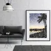 【現代アートポスター】ハワイ 風景景色 海岸 ビーチ ヤシの木 サンセット カリグラフィー A2(L) フレームセット:黒 55.1×73.3cm