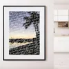 【現代アートポスター】ハワイ 風景景色 海岸 ビーチ ヤシの木 サンセット カリグラフィー A4(S) フレームセット:黒 29.4×38.4cm