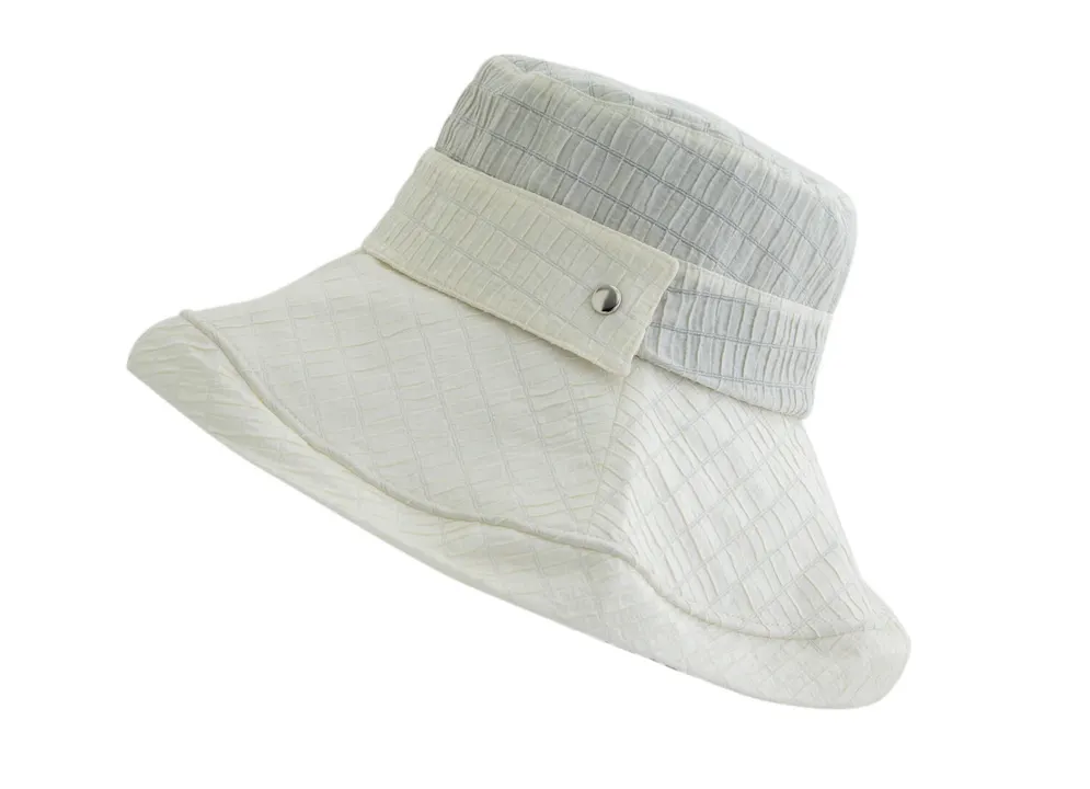 ビスク春夏人気のハットコレクション。 バリエーションが豊富でどれも良いので、どの帽子をセレクトしたら良いのか迷ってしまう! といううれしいお声をいただきますので、ご参考になるよう、顔タイプ診断でおすすめ帽子をセレクトしていただけようにしました。 お客さまご自分のフィーリングで選んでいただくのがベストですが、店頭でも診断チャートとともに是非ご提案ください! また夏の帽子は依然黒っぽい色が人気で、ミッドシーズ以降、どうしても売り場が黒っぽくなってしまう傾向がございます。そんな時に売り場に挿し色がありますとお客様の購買欲も高まりますので、明るめの色を多めに展開している点も今期の特徴です。 ■オトナ×直線のかたにおすすめ! つば広なのに手のひらサイズに小さくたたんで持ち歩けるコンパクトハット。 夏の日差しに映えるブライトカラーを中心に、オフホワイトとグリーンはレフ板効果でお顔を明るく、ベージュは血色を良く見せる効果も! アンニュイな艶が出るブラックは大人の魅力を引き出します。 また日差し除けには充分なつば広ハットのつばに、もう2cmほど生地を縫い合わせ、しっかり顔周りに影ができるようにヘムラインを切り替えしている人気の型を採用。内側に入ったヘムラインにより小顔効果も期待できるフォルムです。 ぽこぽこした凹凸のある光沢生地をつば裏まで贅沢に使用し、クラウン部分の裏地はUVカット生地でしっかり紫外線対策を。 ヘムラインのワイヤーでお好きな形に角度調節できます。 そしてこの帽子の最大のポイントは非常にコンパクトにたためること。 頭周りにスナップボタンで留めているタブを一旦外し、帽子を小さく折りたたんで再びスナップを留めるだけの簡単プロセスで手のひらサイズになります。 広げてもシワになりにくいのもポイントです。 たたみ方はビスク公式YouTubeチャンネルでご紹介していますので、商品ページ動画リンクもしくはQRコードよりご覧ください。 この春夏はこの帽子でたくさんお出かけしましょう。 注目ワード:裏地UVカット、スベリ吸水速乾、折りたたみOK、シワになりにくい