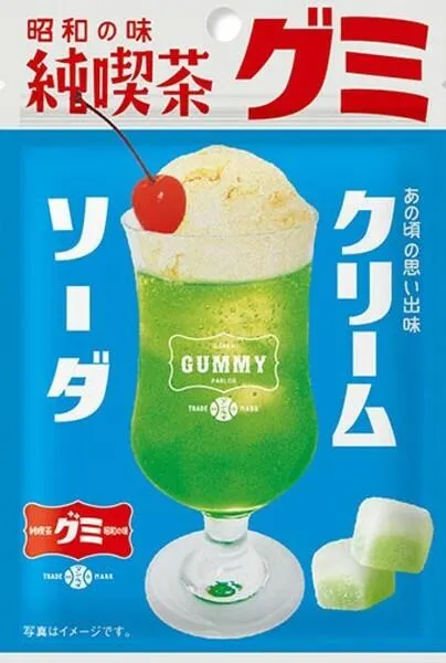 昭和純喫茶でハイカラなドリンクとして人気を博したクリームソーダを2層のグミの中に閉じ込めました。 世代を超えて愛される懐かしの味をお楽しみ下さい。
