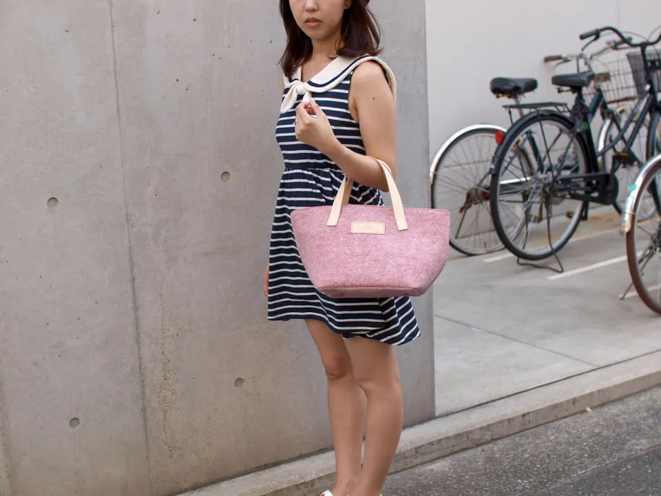 [recycle Felt = 再生フェルト] × [genuine Leather = 国産本革] ペットボトルを回収してつくられた独自開発の再生フェルト、 つかいこむほどに経年変化する国産の本ヌメ革、 普段は交わりあうことのないふたつの“環境素材”。 味わい、温かみ、軽さ、丈夫さ、弾力性、耐久性、防虫性、形状安定性… お互いの素材の良さを引き出し、上手く調和させることで、オン・オフを問わず、 愛着をもって長く使っていただける新しいスタイルのアップサイクルプロダクツ。 FelLe®(フェルレ)は、そんな想いを込めた新しいエコプロダクトブランドです。 ――― 商品説明 ――― 広幅底のスペースを確保した軽量ながらもしっかり形状のランチトート ・広幅の底板を設けた週能力は使いやすさ抜群のサイズ感です。 ・厚手の再生フェルト素材で中身を守る機能性に加え、大きさの割に軽量です。 ・小物入れに便利な内ポケットと、そこ鋲も設けています。 ・開口部は、使い勝手に応じて便利な2段階のホック仕様です。 ・持ち手は厚口4mmのヌメ革を使用し、経年変化を味わえます。 ・フェルト生地は、あえてムラ感を出したスモーキーカラーとなる特殊製造オリジナル生地。 素材: 再生ポリエステル 本革 サイズ: 約W380×H210×D200㎜(袋部) (持ち手立ち上がり:約120㎜) 重さ: 約480g カラー展開: 9色 ――― お買い上げ前にお読みください ――― ・本革を使用している部分には、本革特有の多少の表情のムラや傷、手触りの違い等がありますが、天然本革の一般的な特長であり損傷ではありません。 また、日光や外気や使用時の手触り等により、経年変化を起こし、色が濃くなることがあります。 ・生地のフェルトの素材の性質上、摩擦により毛玉ができることがありますが、ハサミなどでカットしてください。