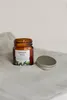 キャンドルはアンバーのグラスがノスタルジー。ジャム瓶のようなデザインが可愛い。蓋はロウにほこりが溜まるのを防いでくれます。ボックス付きでギフトにも最適。