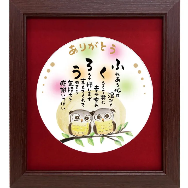 【ふくろう ありがとう お祝い 感謝 ポエム 詩 結婚 記念日 Anniversary ギフト 贈り物 プレゼント【詩絵(うたえ)】 ありがとう エンジ